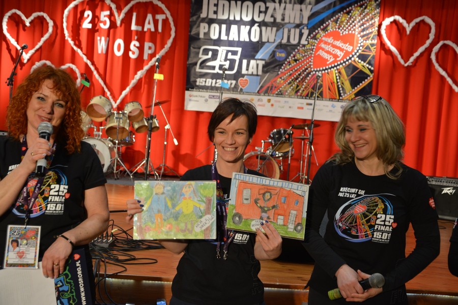 Serdeczne podziękowania wszystkim wolontariuszom zbierającym na terenie całej Gminy Potęgowo, a więc dzieciom i młodzieży z Zespołu Szkół w Potęgowie, Zespołu Szkół w Łupawie, nauczycielom oraz opiekunom wymienionych jednostek Paniom Iwonie Górskiej i Monice Klimczyk, a także osobom prywatnym: Pani Joannie Celban, Michałowi Knasiowi, Pani Zofii Szóstakiewicz, Tomaszowi Wasylko, Remigiuszowi Ciuńczykowi, Elżbiecie Szczepańskiej oraz najmłodszym wolontariuszom tegorocznego finału: Frankowi Wasylko, Julii Marchewka, Oli i Julii Socha. Dziękujemy wszystkim sponsorom, dzięki którym mogliśmy zorganizować tegoroczny finał, ofiarodawcom wrzucającym datki do puszek oraz biorącym udział w licytacjach, zespołom, grupom kabaretowym, solistom występującym podczas tegorocznego finału, dzieciom, młodzieży i dorosłym oraz instruktorom, opiekunom i nauczycielom, dzięki którym wszyscy uczestnicy tegorocznej zbiórki mieli możliwość obejrzeć przepiękne występny. Za umożliwienie zbadania ciśnienia tętniczego oraz poziomu cukru we krwi dziękujemy doktorowi Cezaremu Zielewskiemu oraz pani Krystynie Wielgus - za wykonywanie tych badań. Finałowe podsumowanie puszek możliwe było dzięki: Paniom Elżbiecie Szczepańskiej, Barbarze Tutak, Jolancie Straszak, rodzinie Pradlików - Agnieszce, Aleksandrze i Robertowi, którzy wytrwale, do późnych godzin nocnych liczyli zebrane pieniądze. Dziękujemy im za ciężką pracę. Serdecznie dziękujemy Wójtowi Gminy Potęgowo Panu Dawidowi Litwinowi za udostępnienie transportu na tegoroczny finał, strażakom z OSP w Potęgowie za czuwanie nad naszym bezpieczeństwem, akustykom- panom Adamowi Wrońskiemu i Maciejowi Basiakowi; za pracę w sklepiku panu Tomaszowi Wasylko, Państwu Emilii i Arkowi Damaszk, pani Elżbiecie Kędra; pani Marcie Rutkiewicz, panu Jakubowi Rutkiewicz i panu Władysławowi Rutkiewicz- Nikorowicz oraz animatorom z "Pałacu pod Bocianim Gniazdem" w Runowie za organizację tańców animacyjnych dla dzieci. Serdeczne podziękowania za współprowadzenie dzisiejszej imprezy pani Izabeli Zielińskiej i Izabeli Marchewce, pomagającym: Justynie Wasylko, Karolinie Czerwińskiej, Kamili Młynarczyk, Beacie Lemek, Krzysztofowi Marchewce, Magdalenie Semak, Michałowi Czerwińskiemu, Sylwii Szyca.