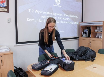Szkolenie miało również wymiar praktyczny. Uczestnicy ćwiczyli komunikację kryzysową oraz współdziałanie w systemie ochrony ludności. Poznali również zasady kompletowania i wyposażania plecaka ewakuacyjnego, który może okazać się niezbędny w sytuacjach nagłego zagrożenia.