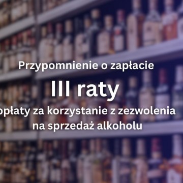 Przypomnienie o dokonaniu III raty opłaty za korzystanie z zezwoleń na sprzedaż napojów alkoholowych do 30.09.2025 r.