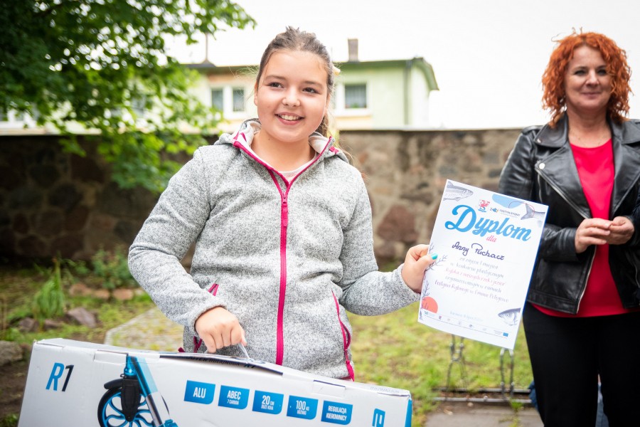 Podczas festynu został również rozstrzygnięty konkurs plastyczny pt. „ Rybka z naszych rzek i jezior” skierowany do dzieci w dwóch kategoriach wiekowych, tj.: klasy I-III oraz klasy IV-VI. Wszystkie zgłoszone prace były przygotowane z największą starannością , i choć nie wszystkie spełniały wymogi regulaminu (wiek uczestników), to każde dziecko otrzymało symboliczny upominek oraz dyplom za udział. Nagrody rzeczowe w konkursie plastyczny, w kategorii klas I-III otrzymali: I miejsce Zofia Graczyk  z klasy I, II miejsce Zofia Kubicka z klasy II i III miejsce Krzysztof Puchacz z klasy I. Laureaci grupy wiekowej I-III otrzymali zestawy klocków LEGO. W kategorii wiekowej IV-VI  I miejsce zajęła Anna Puchacz z klsy IV, II miejsce – Julia Marchewka z klasy IV i III miejsce Olga Puton z klasy VI . Laureaci konkursu plastycznego w grupie wiekowej IV-VI otrzymali następujące nagrody rzeczowe: hulajnoga, deskorolka oraz Smartband.