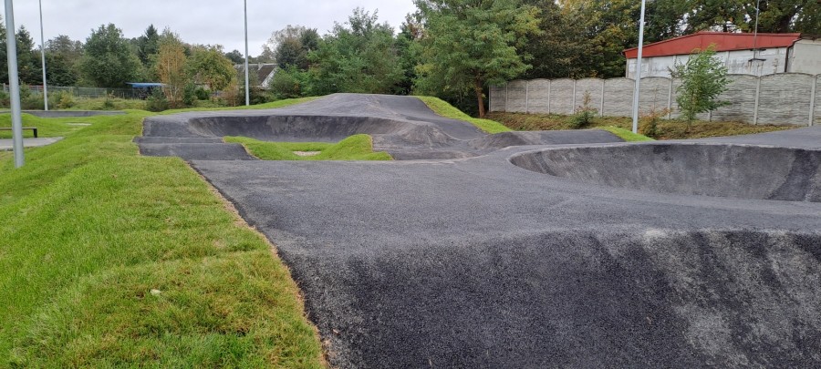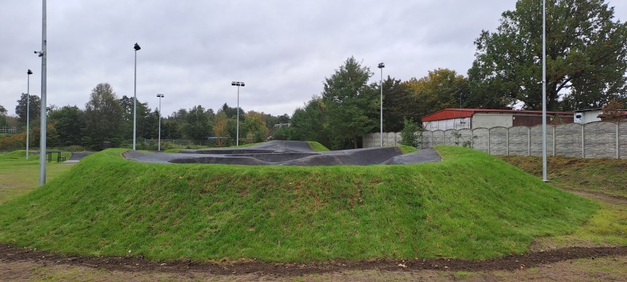 Wybudowane zostały dwa asfaltowych tory rowerowe PUMTRACK: dla zaawansowanych (Flowtrack) oraz początkujących (Mini Pump). Łącznie powierzchnia torów po obrysie skarp wynosi 1095 m2. Utwardzony został też plac stanowiący miejsce odpoczynku i przygotowania do jazdy. Na terenie obiektu znajdują się też elementy małej architektury, takie jak ławki, stojaki na rowery, tablice informacyjne, kosze na śmieci. Zainstalowano słupy oświetleniowe w ilości 7 sztuk z oprawami LED oraz monitoring – 4 kamery.