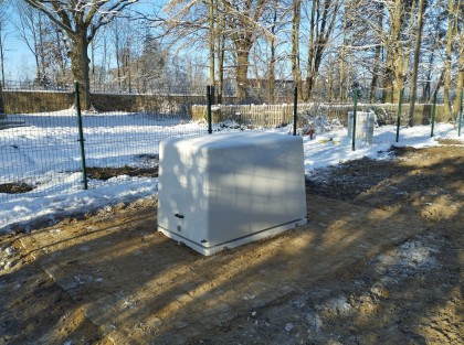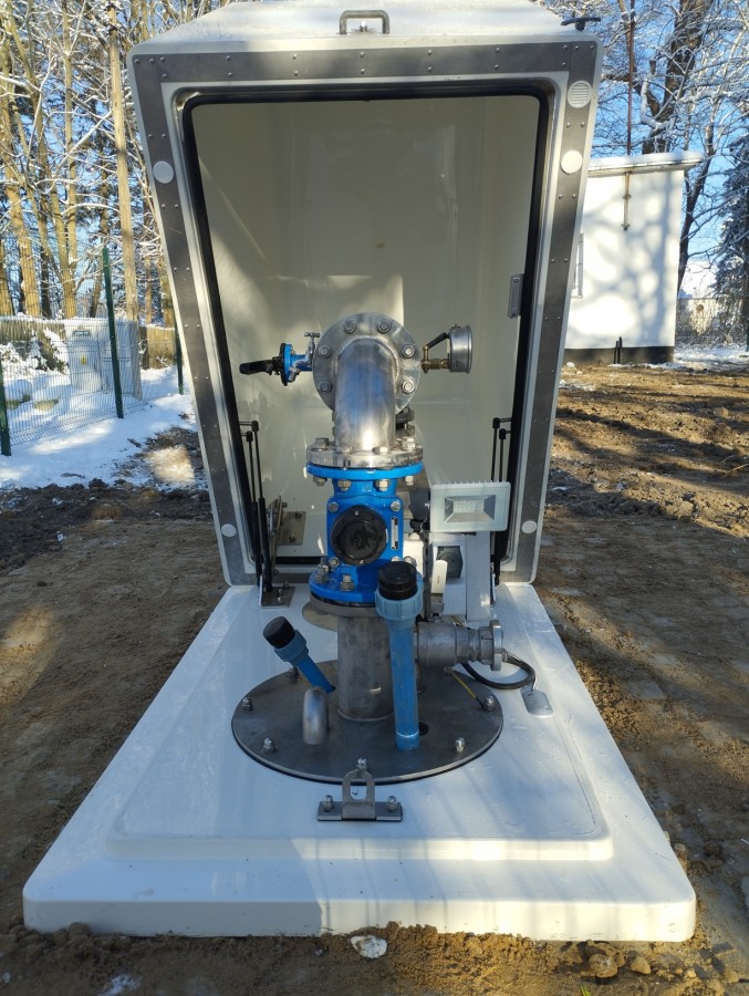 - przepompownia ścieków z kręgów betonowych z szafką sterowniczą i wewnętrzną linią zasilającą
