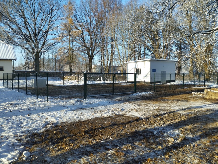 - ogrodzenie panelowe przy budynku hydroforni i studni nr 3 wraz z bramą dwuskrzydłową oraz utwardzenie terenu przy obudowie ujęcia nr 3 z kostki granitowej koloru szarego;