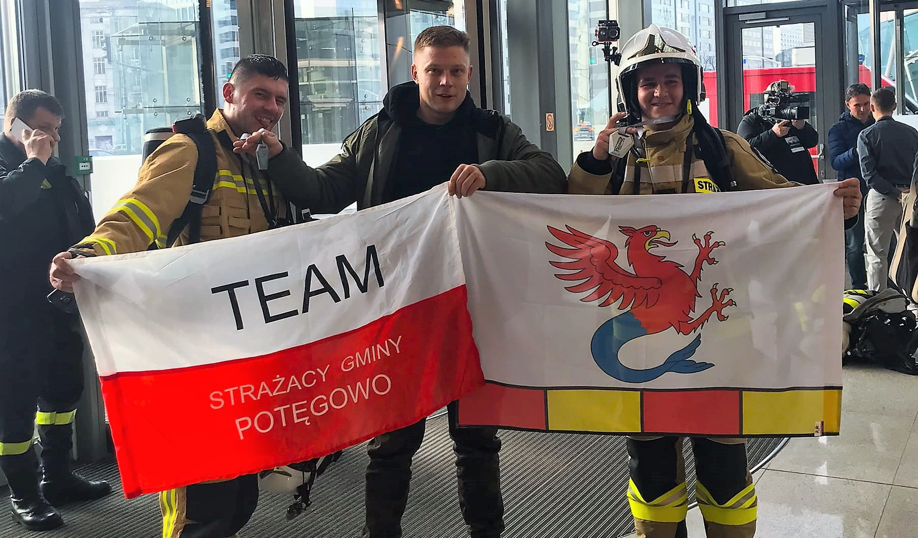 Strażacy z gminy Potęgowo wbiegli na szczyt warszawskiego wieżowca