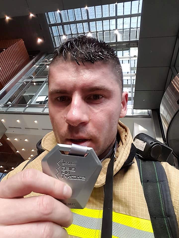 Strażacy z gminy Potęgowo wbiegli na szczyt warszawskiego wieżowca