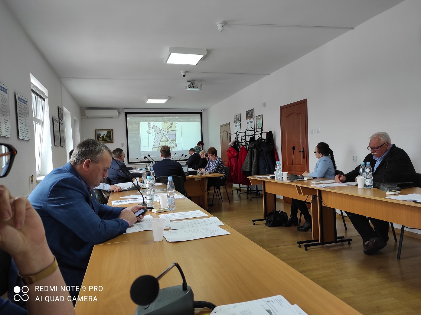 radni przy stole konfernecyjnym, w tle na ekranie projekt planu zagospodarowania przestrzennego